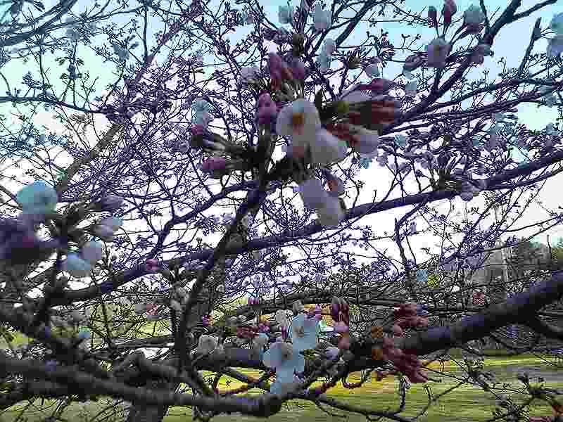 土生中学校の校庭の咲くらも、一分咲きと言ったところでしょうか。