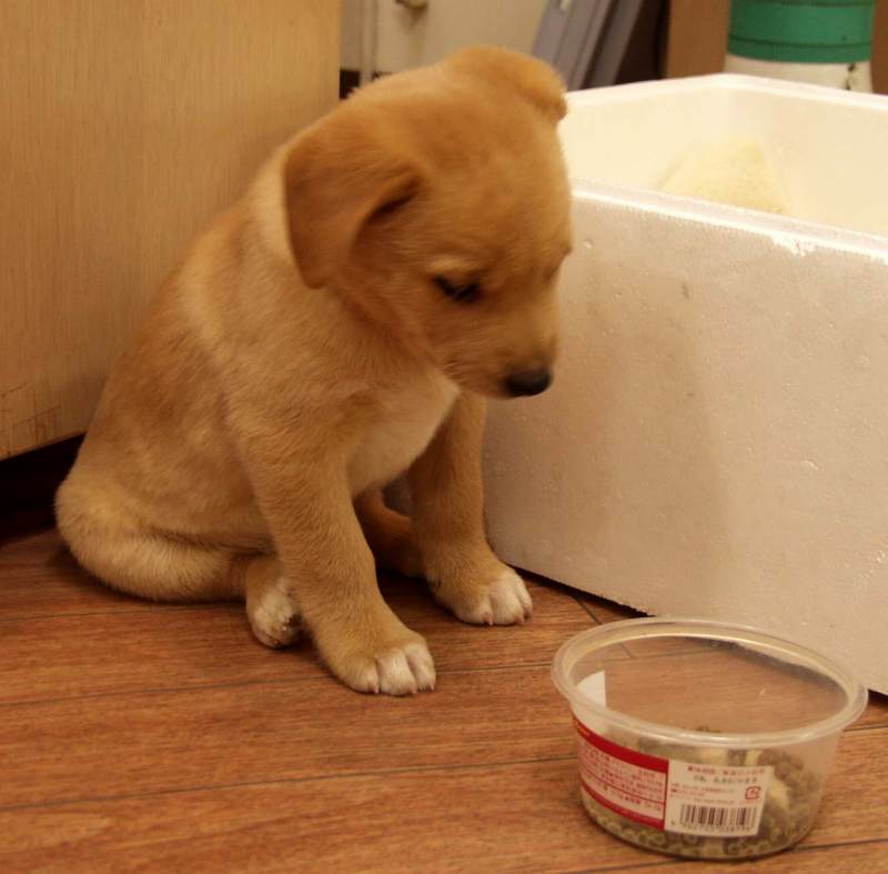 寝相を写そうと、レイ君の小屋の中をパチリ。