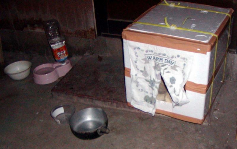 コリンの小屋は、我が家の基礎に穴を開けて、その中に木箱を入れてあります。