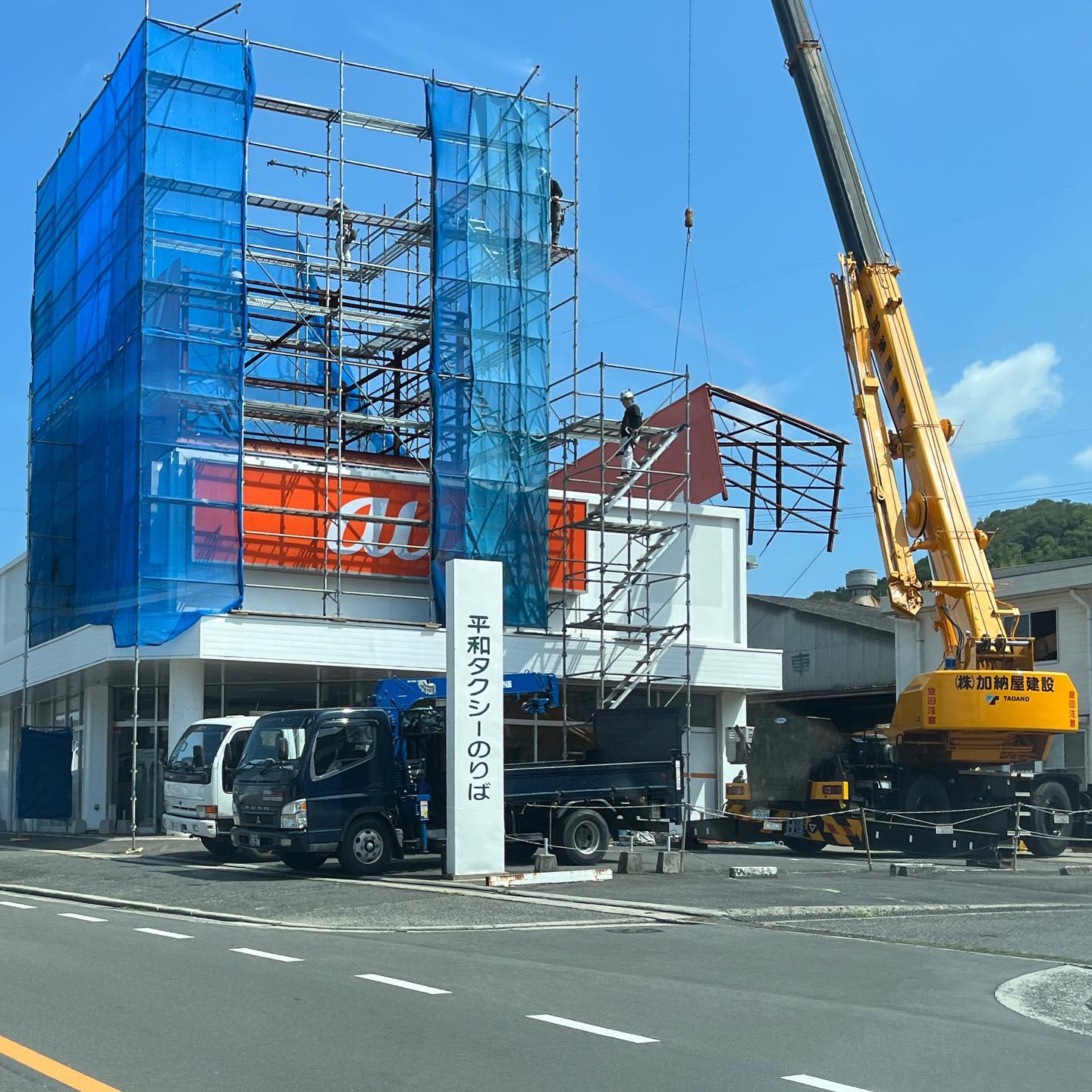 auショップ因島の看板の取り替え工事が行われていました。#au #因島 #因島中庄