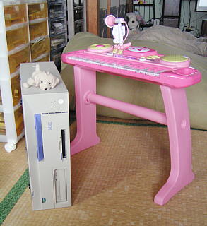 ダスキンIBMパソコンと真理香(娘)のピンクのキーボード