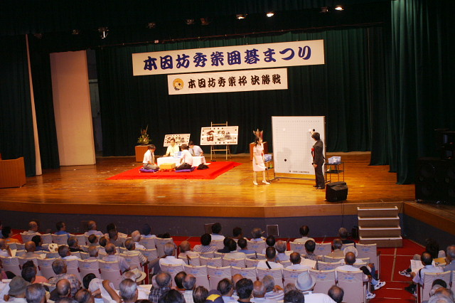 囲碁まつりのメインイベントの公開対局です。