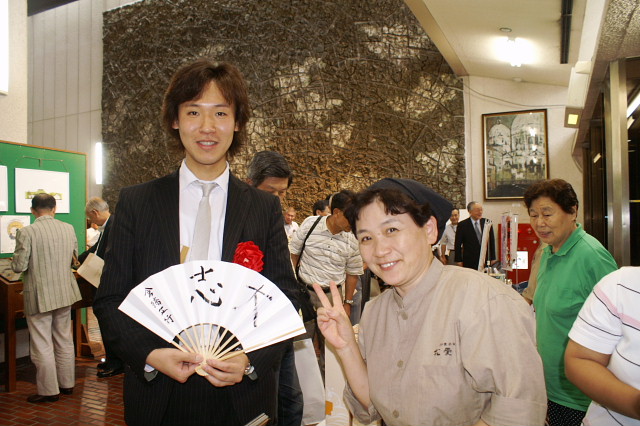 準優勝のイケメンのプロ棋士に色紙にサインしてもらった松愛堂のかた。
