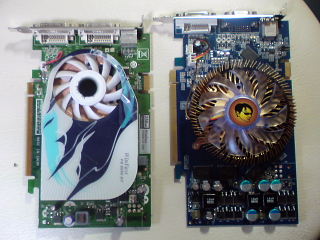 新旧カードを並べてみました。今までのビデオカード(左)はリアルテックのWinFast PX8600 GT TDHファンモデルです。