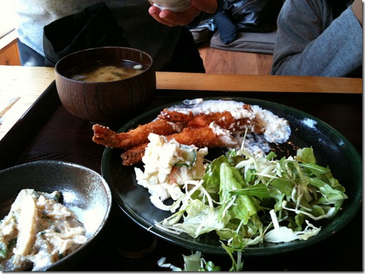 妻は海老フライランチ。食べかけ画像ですいません(*^_^*)