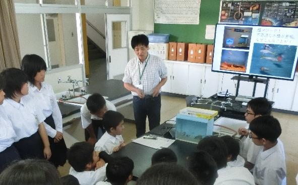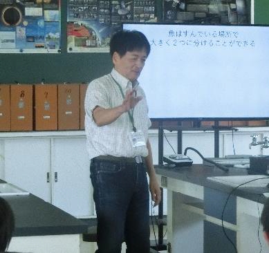 今回は、「海水魚と淡水魚が、なぜ同じ場所で生活できないか?」という学習課題を解決するために、前回の学習内容や生物の進化の過程をたどりながら学習を展開しました。