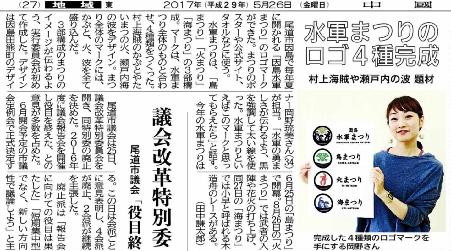 ↓↓↓2017年5月26日の中国新聞で紹介されました↓↓↓