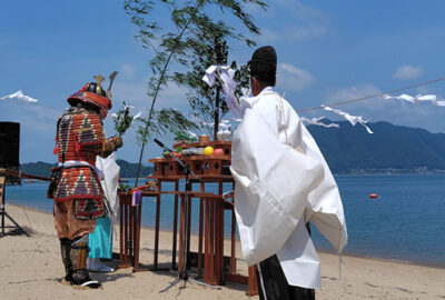 2025因島水軍まつり実行委員会は2025年(令和7年)7月6日に、因島水軍まつりの会場となる「因島アメニティ公園」にて『2025因島水軍まつり安全祈願祭』を役員・島火部会員・海部会員などのスタッフ出席のもと実施しました。