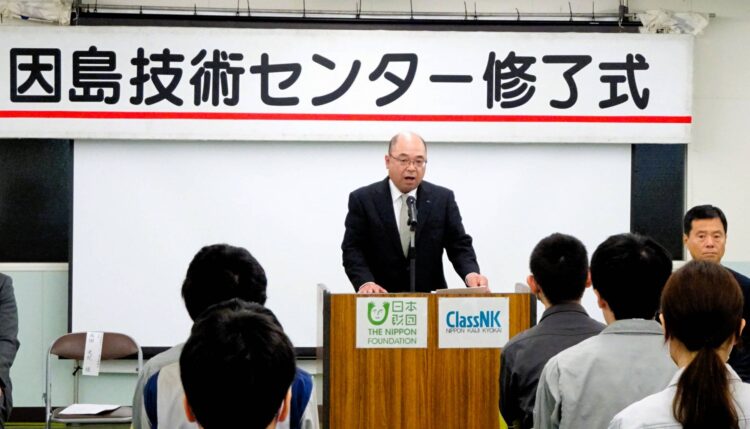 造船技術の継承と人材育成をめざす因島技術センター初任者研修は3ヶ月の研修期間を終えて6月28日、修了式を行なった。