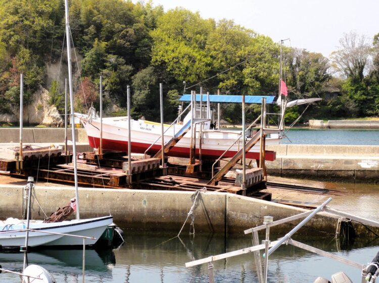 漁船の安全な操業のためには、船底に付着した海藻・牡蠣殻・フジツボなどを取り除きペンキを塗り替える作業を、半年または1年間隔でしていく必要がある。その時、漁船を巻揚げ施設に引き揚げて修繕をする。