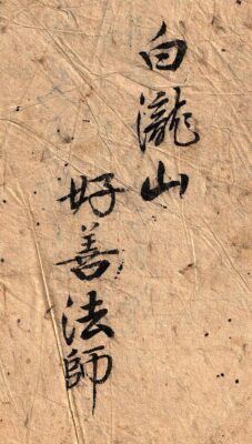 以前書いたように伝六家は絶家したので、伝六の事跡を伝える文書はほとんどない。そのような状況であるから、好善法師が残した伝六関係の書類は貴重である。それらは綴じられており末尾に「白瀧山好善法師」と記されている=写真①。
