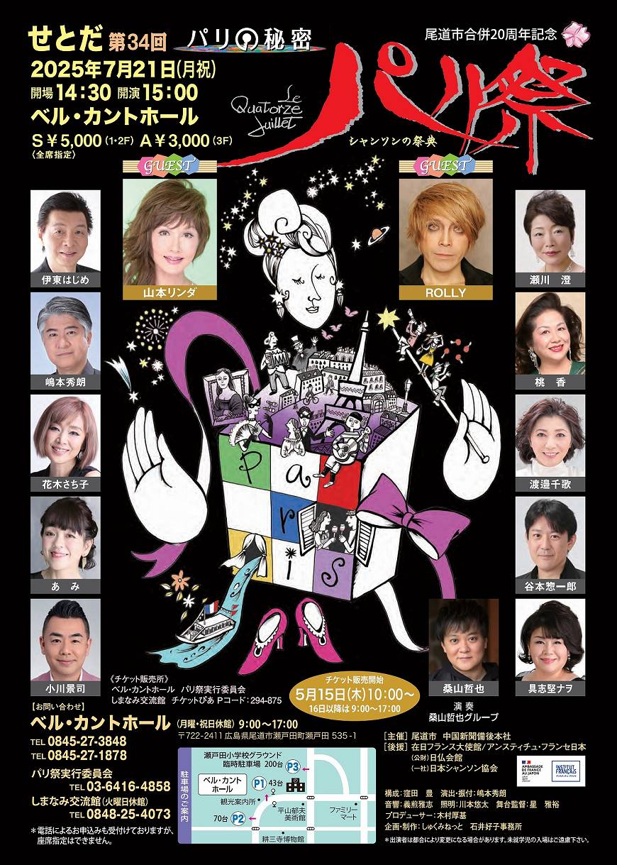 第34回せとだパリ祭が7月21日(月曜日・祝日)、尾道市瀬戸田町のベル・カントホールで開催される。