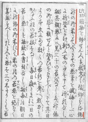 刊行本より4ページ少ないが、好善法師本を見る。「願い事あらばこの功過格を受持して善を積むこと一万にも満たせば禍い除き福(さいわ)い来たりていかなる願い望みも成就せずと言うことなし」「この功過格を修せん人は我常々信仰する仏神の御前にて悪事を懺悔し一心に祈請をかけ祈るべし」「その報恩には三千の善をなして神仏の御恩に報ぜんと誓いをなすべし」「毎月一日に神仏の御前にて前月の善悪を偽りなく算用すべし」(一部文字省略)などとある。