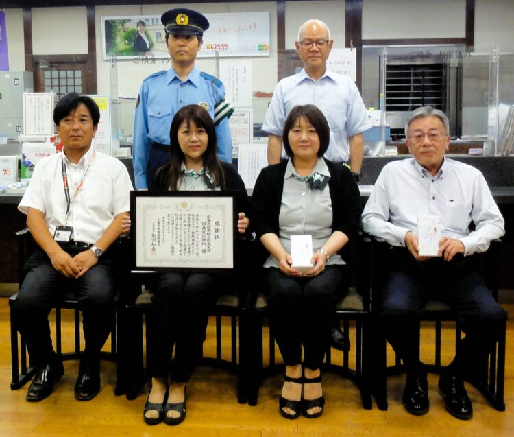 同署によると、6月11日、ケンシン因島支店北出張所を訪れた30歳代の男性が「お金を使ってしまったので、元に戻したい」と申し出た。対応にあたった職員の小林敬子さんと江島良美さんが詳しく事情を聞いたところ、男性は「ネットで知り合った人に振り込んでしまった」と説明。詐欺被害の可能性が高いと判断し、すぐに警察へ通報した。
