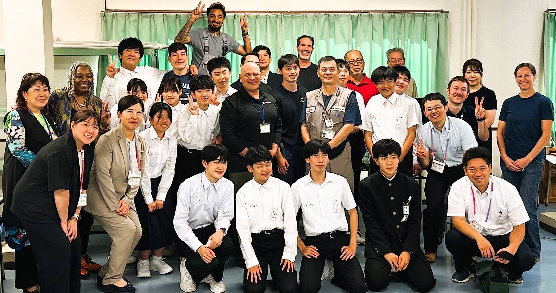 JMU因島事業所では外国籍船の修繕を行っており、日常的に英語が使われる職場環境がある。今回の交流は、同校の英語講師・長尾理恵さんの仲介により実現したもの。