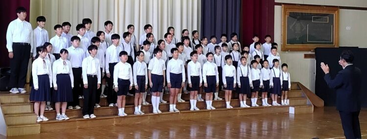 フィナーレは、歌人吉井勇の詩「白滝の山に登れば~」をもとに、平成16年(2004年)度の児童が作詞し、教員が作曲した「白滝讃歌」。小学生44人と中学生15人が心を合わせて合唱し、体育館を訪れた町民から大きな拍手が送られた。