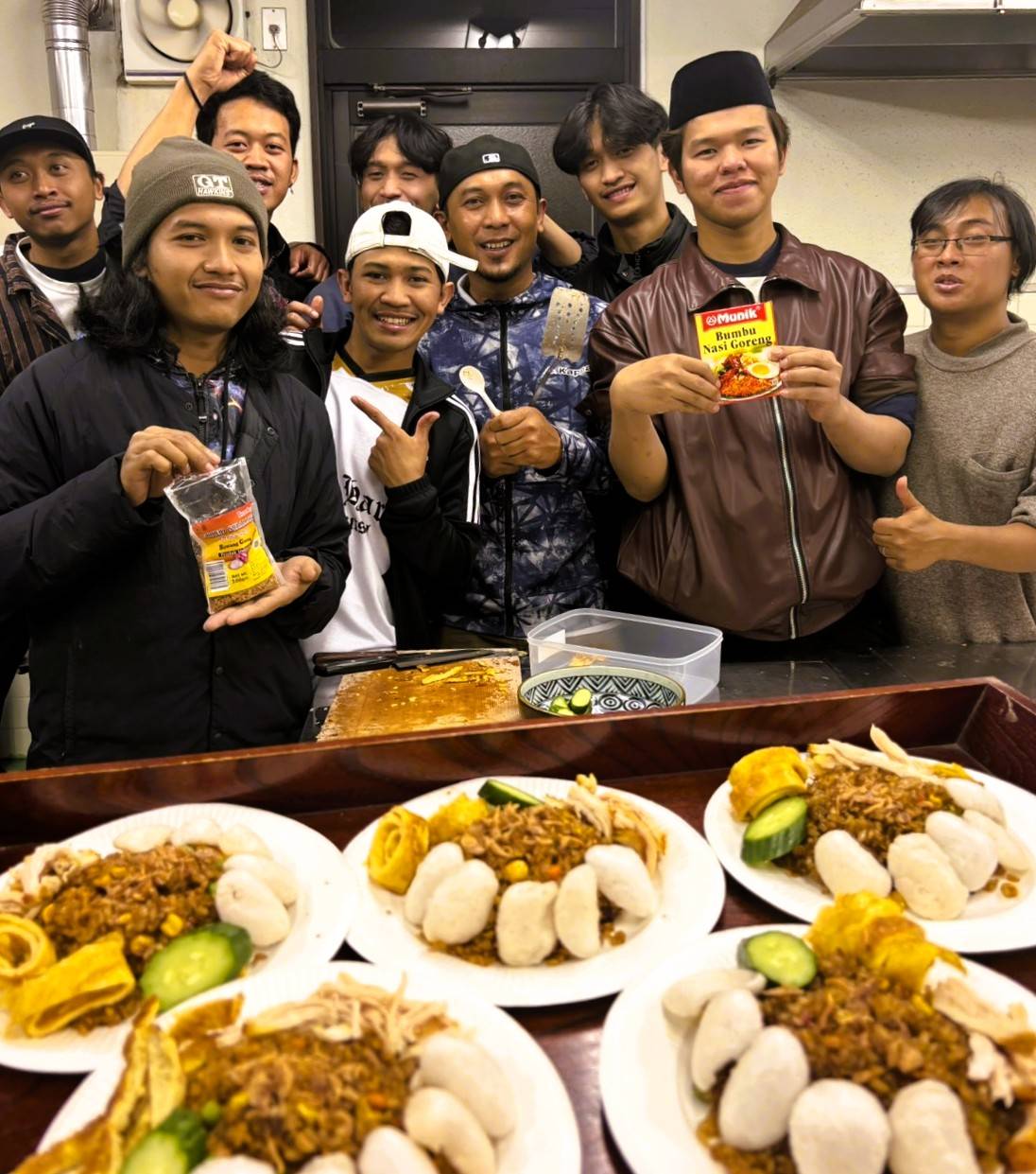 今回は、インドネシアの学習者が企画をして、インドネシアの伝統的な料理の「ナシゴレン」を振る舞ってくれました。インドネシア語で「ナシ」はご飯、「ゴレン」は炒めるという意味を表します。
