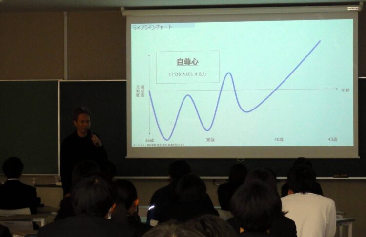 このReRayの共同代表である河野元希さん(43)が11月19日、因島高校で行われた社会人講演会に登壇した。1年生60人が対象で、「こころの力を高めよう~自分のレジリエンスに気づく自己探求~」をテーマに開催された。
