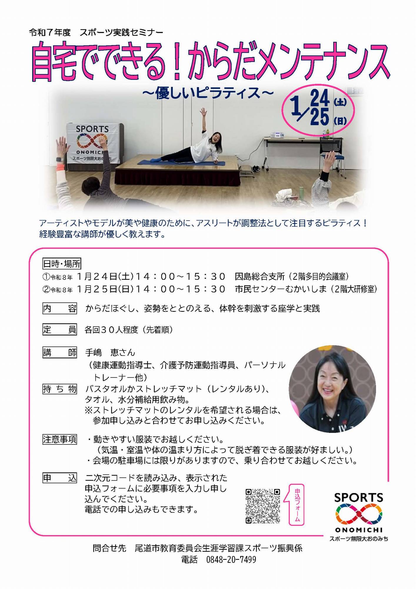 自宅で出来る「からだメンテナンス」を、ピラティスをベースにして学ぶスポーツセミナーが来年(2026年)1月、開催される。