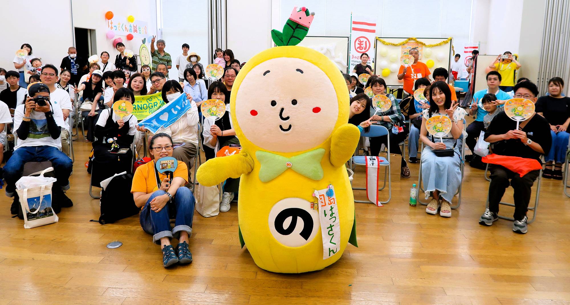 7月から因島イメージキャラクター「はっさくん」を軸に、島全体でおもてなしキャンペーンを展開してきた「島ごとはっさくん in 因島」が12月25日、最終日を迎える。これに先立ち主催する実行委員会は20日、尾道市因島土生町の中央駐車場「ポートピアはぶ」でフィナーレイベントを開催する(入場無料)。