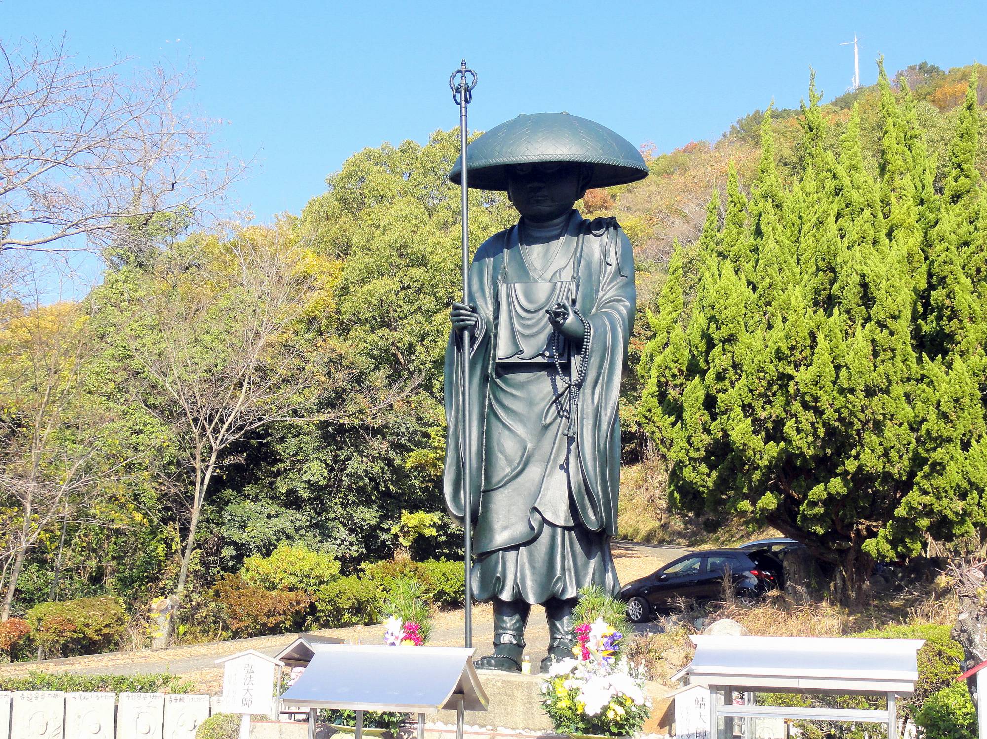 尾道市因島土生町の因島公園に建立されている弘法大師(空海)像の修復工事が完了し、12月6日、現地で開眼法要が執り行われた。