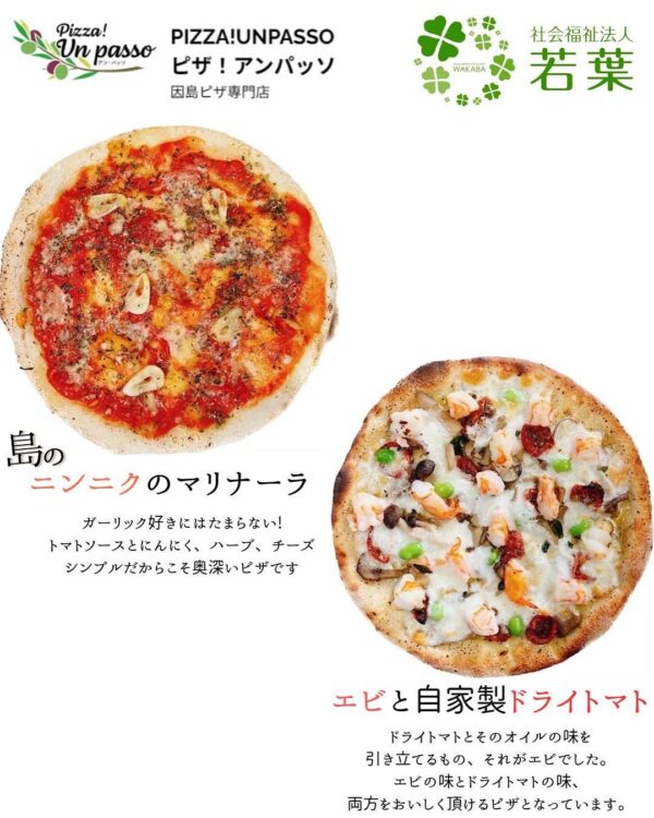 こうした自家栽培の新鮮野菜を活用し、2022年秋にオープンしたピザ店「ピザ!アンパッソ」(重井町)では、本格的なピザを製造。「ていねいに、ていねいに」をモットーに、一枚一枚手作りしている。店は「すべての人が地域で普通の暮らしをする」という理念のもと、健常者と障がいのある人が共に働く場として運営され、今年で4年目を迎える。現在はオンラインショップとヤマザキショップ三庄店(三庄町)で冷凍の本格ピザを販売している(店舗休業中)。
