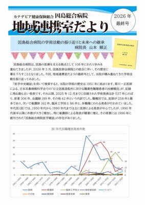 因島総合病院は、因島の医療を支える拠点として108年にわたり歩みを重ねてきましたが、2026年3月、因島医師会病院との統合に伴い、その歴史に幕を下ろすこととなりました。今回、地域連携だよりの最終号として、当院が積み重ねてきた学術活動の歩みを振り返ってみました。