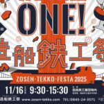 2025年11月8日 / 最終更新日 : 2025年12月5日 times 造船 11月16日 第6回造船鉄工祭 工場内の見学ツアー・体験ワークショップ・マルシェ・親子で乗船ツアー 尾道市の地場産業である造船・鉄工関連企業が一堂に集い魅力を体験してもらおうと、今年も「第6回造船鉄工祭」が11月16日(日)、因島鉄工業団地協同組合(因島重井町)と三和ドック(同)の敷地内で開催される。 9時30分~15 […]