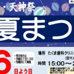 2025年6月14日 / 最終更新日 : 2025年7月10日 times 因島田熊町 因島田熊町「明神祭・天神祭」夏祭り 7月6日開催 尾道市因島田熊町の東浜夏祭奉賛会は、7月6日(日)に「明神祭・天神祭」夏祭りを旧マルナカ商店横のたくま歯科クリニック駐車場で開く。今年から両祭を同日に実施する。15時~20時30分。荒天時は13日に順延される。 15時か […]